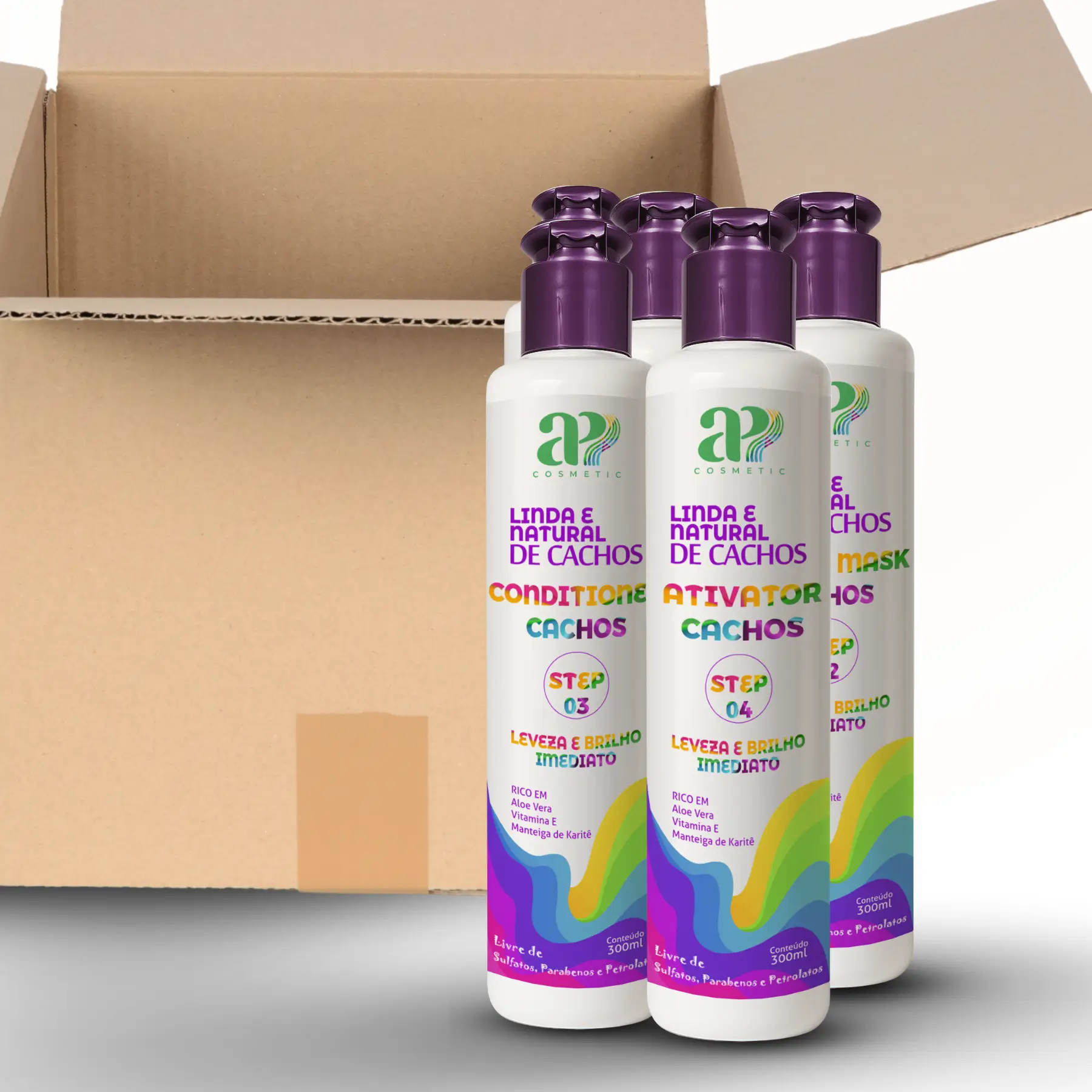 O Kit Linda & Natural de Cachos – AP Cosmetic traz uma rotina capilar completa em 5 passos essenciais para quem busca cachos bem cuidados, definidos, hidratados e cheios de brilho.